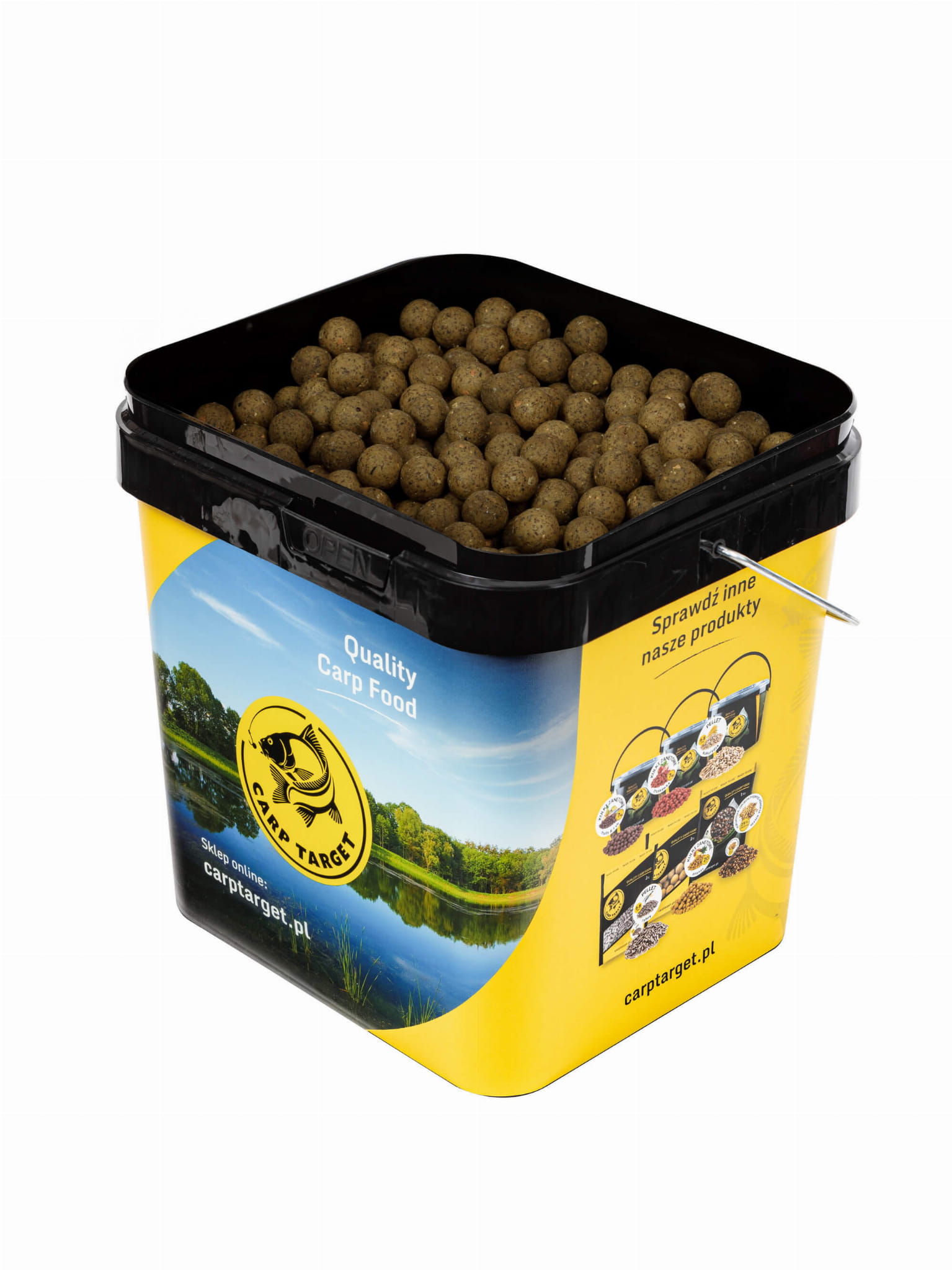 W zestawie otrzymujesz w nasze firmowe Wiadro 17L w które zapakowane są kulki. Wiadro przyda się na niejednej zasiadce karpiowej, szczególnie, że idealnie pasuje do stojaka na SPOMBA.