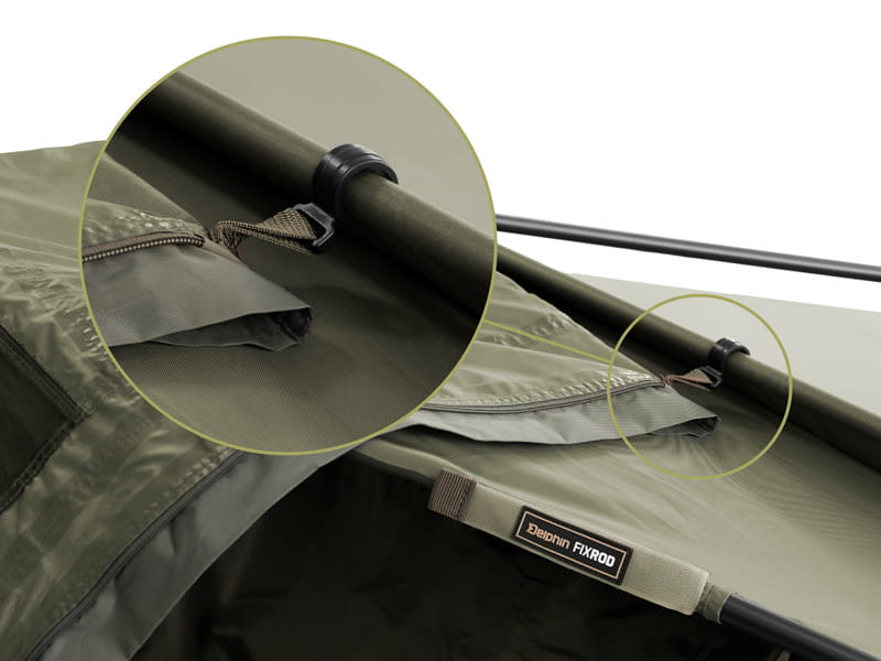 Dzięki inteligentnemu projektowi, namiot karpiowy Delphin zapewnia przestronne wnętrze, które pozwala na swobodne manewrowanie sprzętem wędkarskim. Posiada także liczne otwory wentylacyjne, które utrzymują optymalny przepływ powietrza wewnątrz namiotu, eliminując efekt parowania i zwiększając komfort użytkowania.