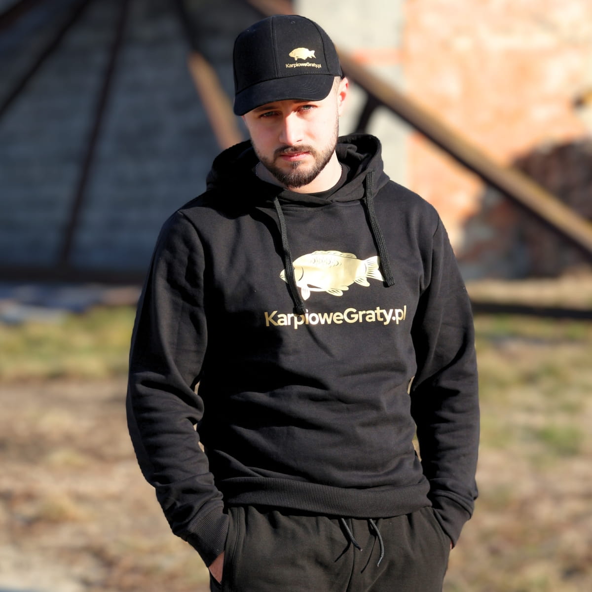 Ciepła bluza wędkarska z kapturem, z dużym logo KarpioweGraty.pl.
