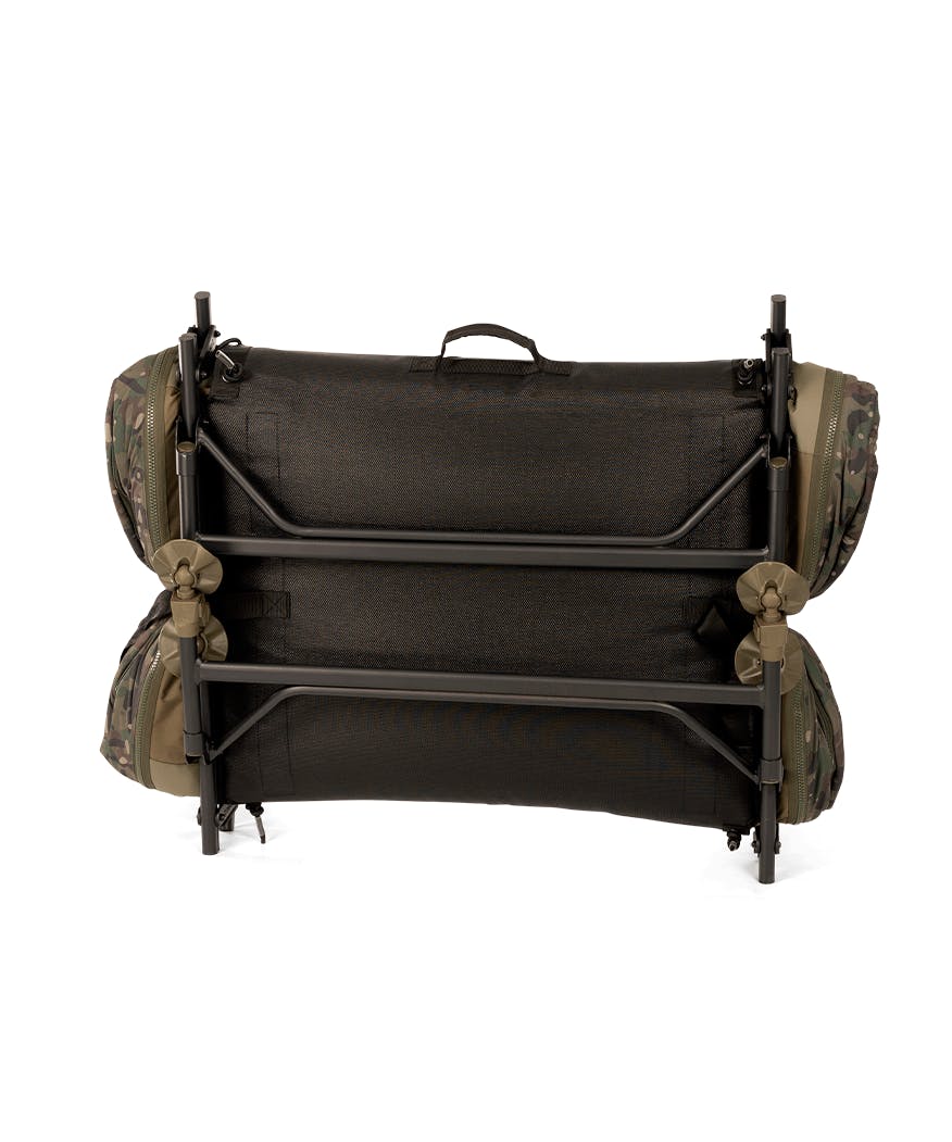 Przedstawiamy systemy łóżek Levelite Oval MF-HDR, które są najnowszymi dodatkami do naszej wielokrotnie nagradzanej serii Levelite i wyznaczają nową generację systemów łóżek premium oferujących znakomity poziom komfortu przy brzegu. Charakteryzują się one tym samym rewolucyjnym owalnym kształtem zapewniającym optymalne wykorzystanie przestrzeni wewnątrz schronienia, ale teraz są również wyposażone w materac z pianki z pamięcią kształtu o dużej gęstości i poręczową sekcję środkową zapewniającą niezrównany poziom komfortu i podparcia lędźwiowego. Stabilność została jeszcze bardziej zwiększona dzięki ośmiu sprężynowym nogom w obu rozmiarach systemów, a dwuwarstwowy śpiwór optymalizuje system do użytku przez cały rok. Wykończony w naszym oszałamiającym, zaprojektowanym na zamówienie wzorze kamuflażu, jest to zdecydowanie najlepszy karpiowy system spania, jaki kiedykolwiek wyprodukowaliśmy!