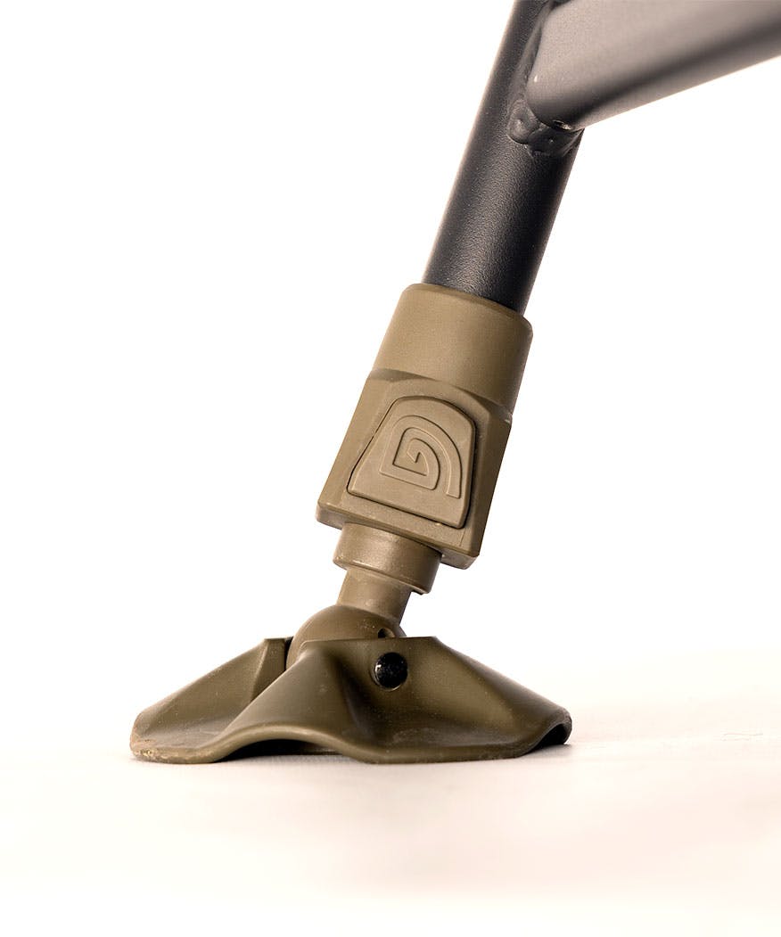 - Osiem regulowanych sprężynowych nóg z obrotowymi stopkami błotnymi, 1 na każdym końcu dla równomiernego rozłożenia obciążenia na całej ramie